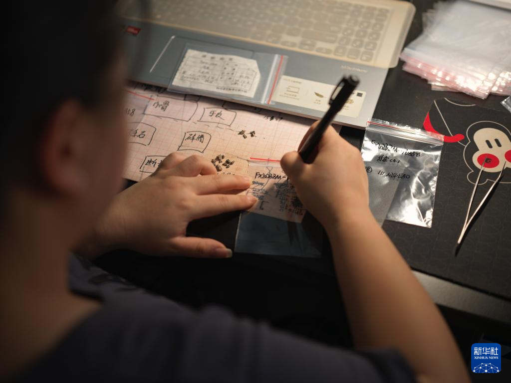 考古人员在四川资阳濛溪河遗址群现场对浮选土样进行登记(2025年4月8日摄)。新华社记者 薛晨 摄