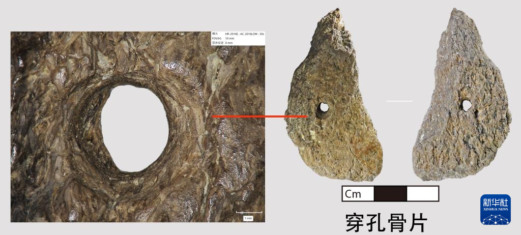 这是从四川资阳濛溪河遗址群出土的穿孔骨片(资料照片)。新华社发(四川省文物考古研究院旧石器考古研究所供图)